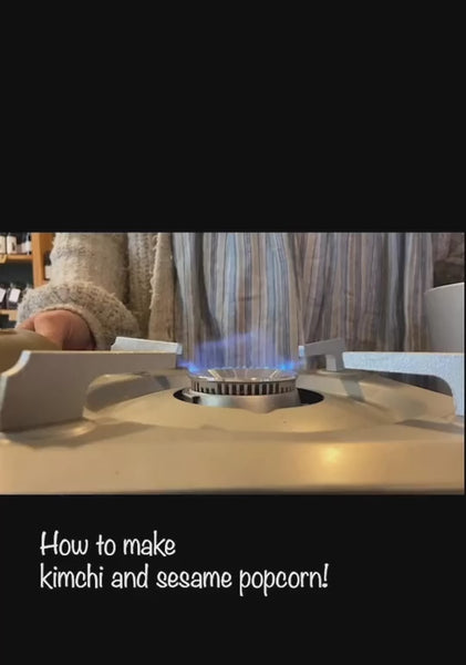 Pop it however you like - heat about a tablespoon of the kimchi paste gently with some of the sesame oil...and mix well with the warm popcorn. Sprinkle the kimchi dust in and mix again.